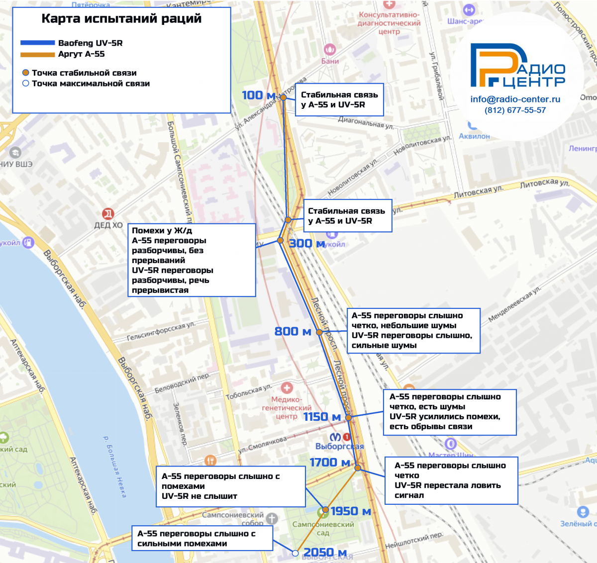 Вердикт по связи: До заявленных на коробках и инструкциях дальностях, как обычно никто не дотянул на этом маршруте. При сравнении Аргут А-55 показывает себя стабильнее и «дальнобойнее» благодаря качественной антенне и настройке. Baofeng UV-5R показал не самые хорошие результаты из всех тестируемых нами раций, требует доработки напильником (замена антенны и более «глубокой» настройки).